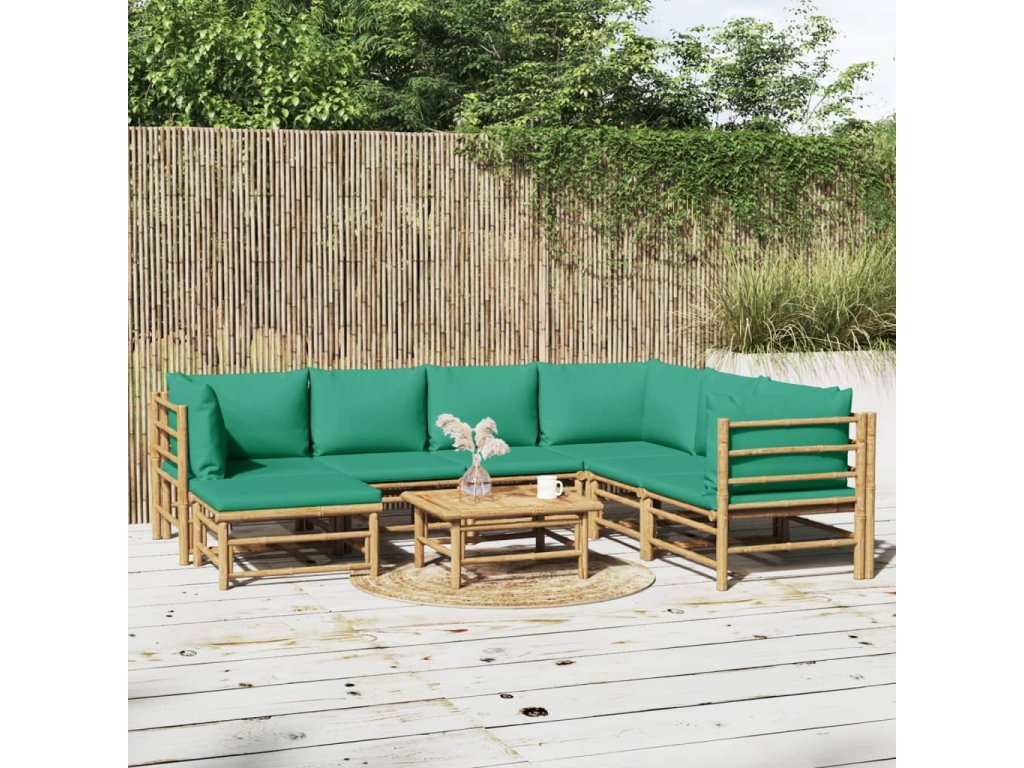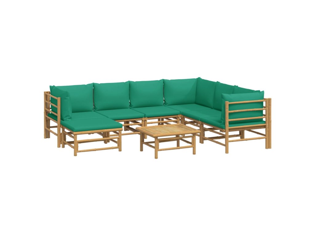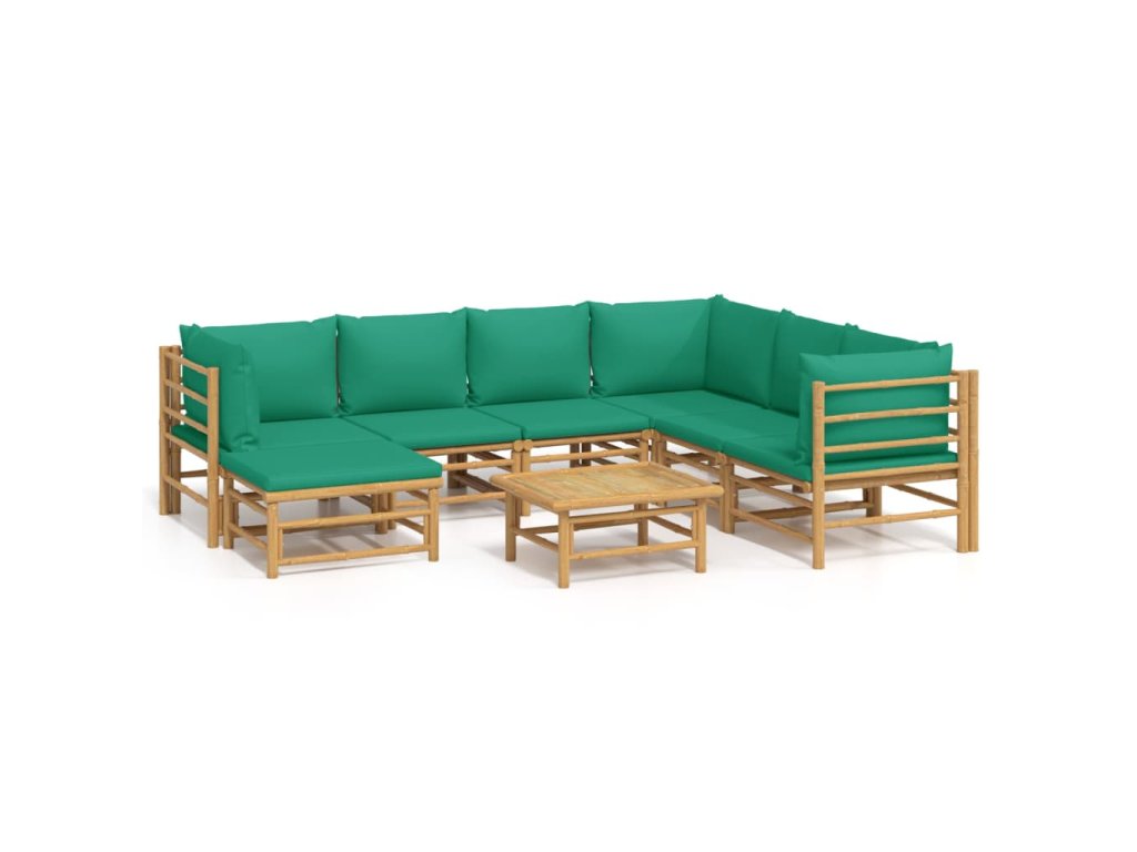 8dílná zahradní sedací souprava se zelenými poduškami bambus 3155159
