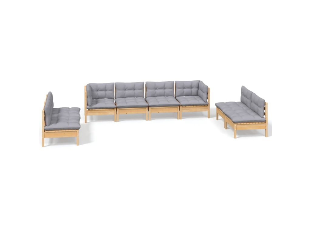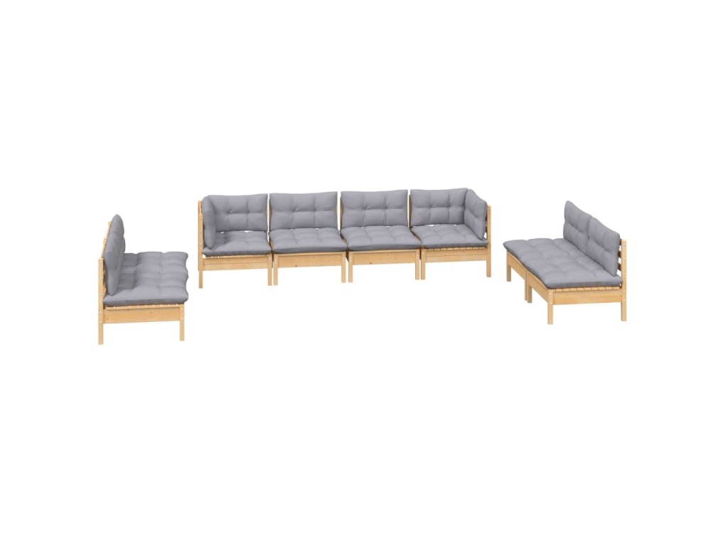 8dílná zahradní sedací souprava šedé podušky masivní borovice 3096231
