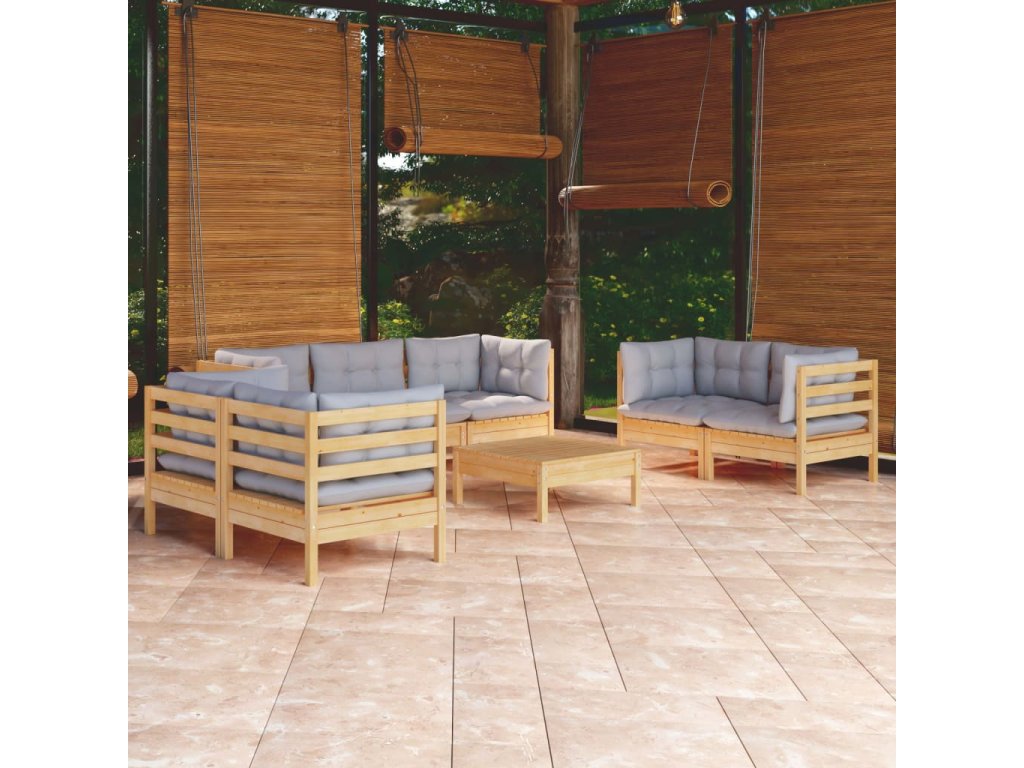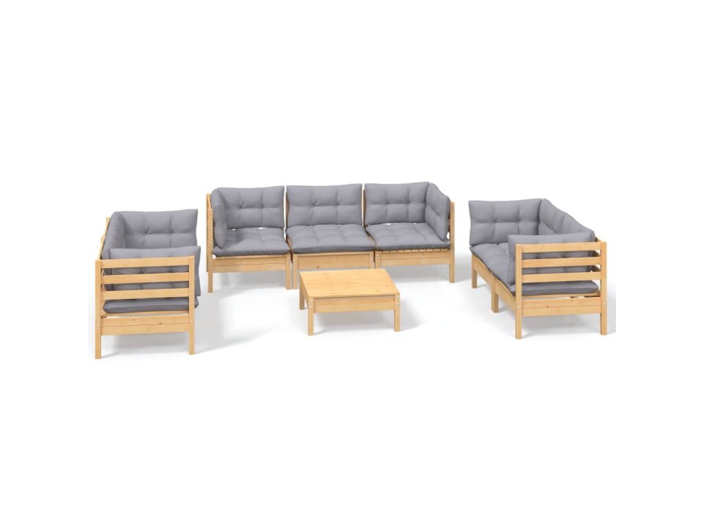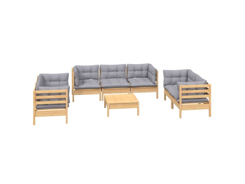 8dílná zahradní sedací souprava šedé podušky masivní borovice 3096261