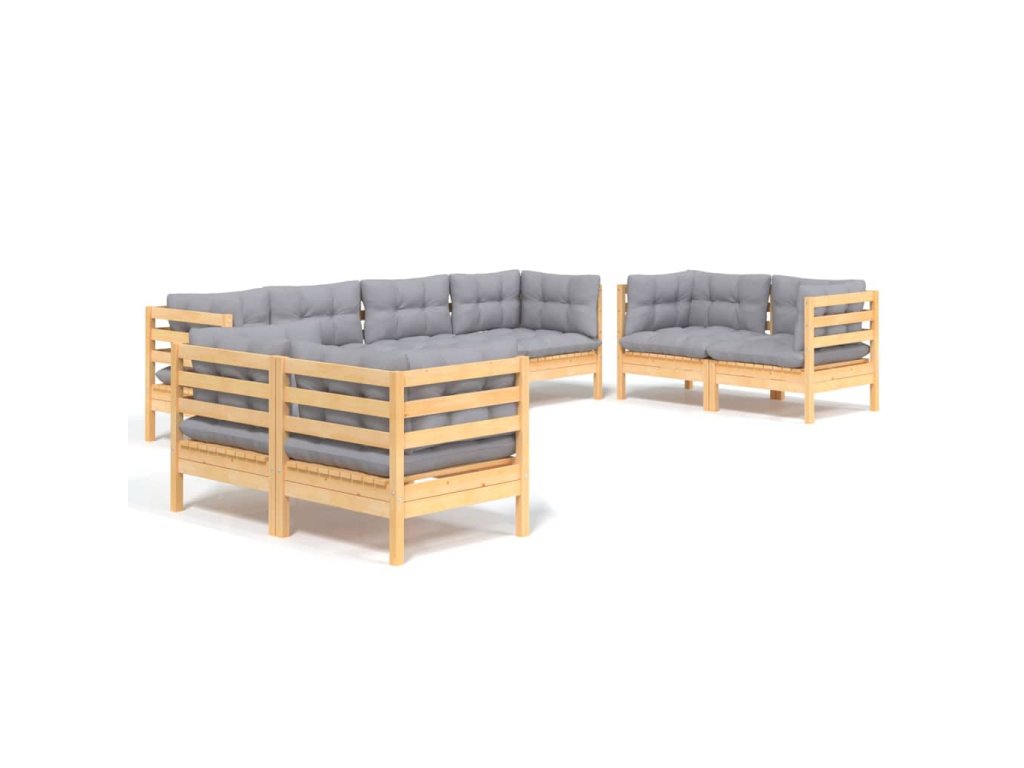 8dílná zahradní sedací souprava šedé podušky masivní borovice 3096267