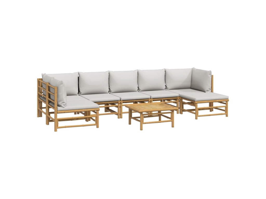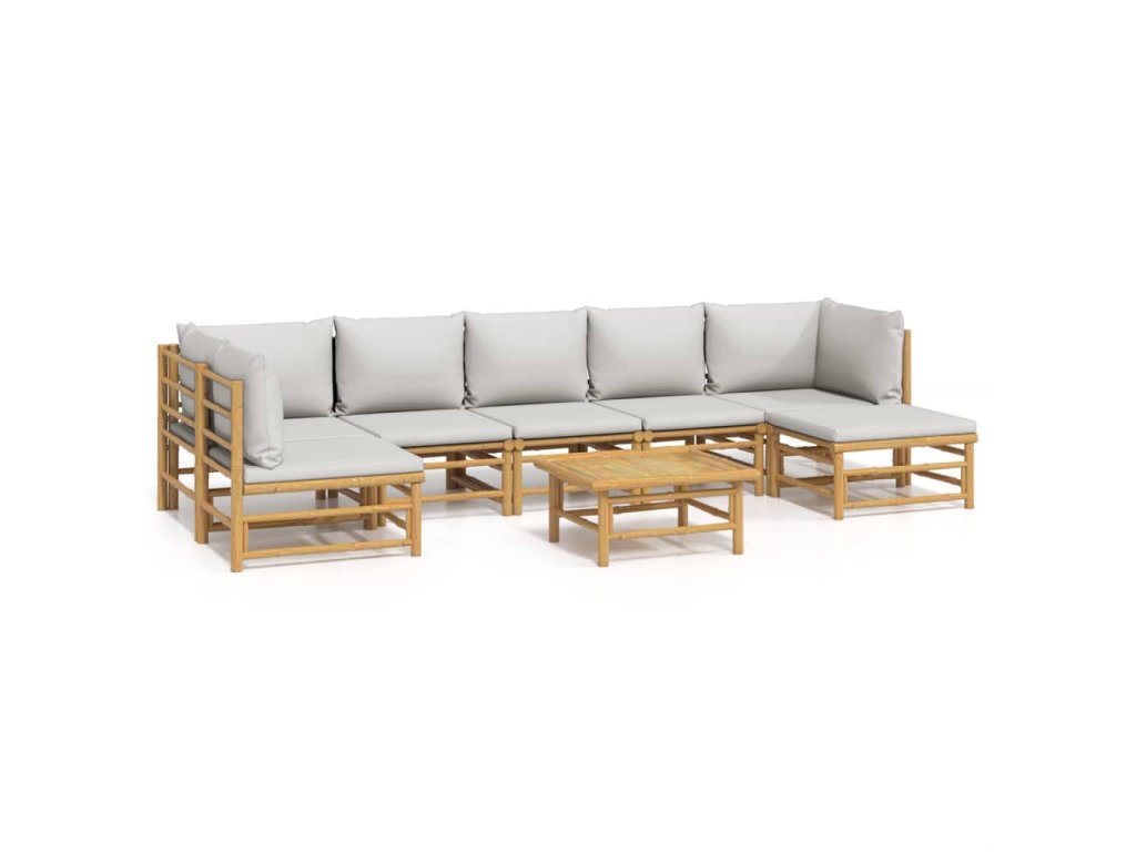 8dílná zahradní sedací souprava světle šedé podušky bambus 3155110