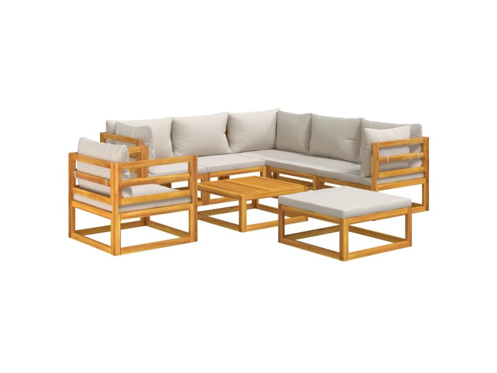 8dílná zahradní sedací souprava světle šedé podušky masiv 3155290