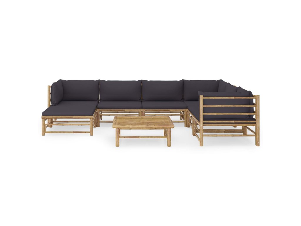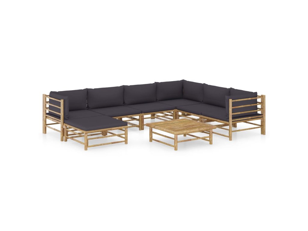 8dílná zahradní sedací souprava + tmavě šedé podušky bambus 3058220