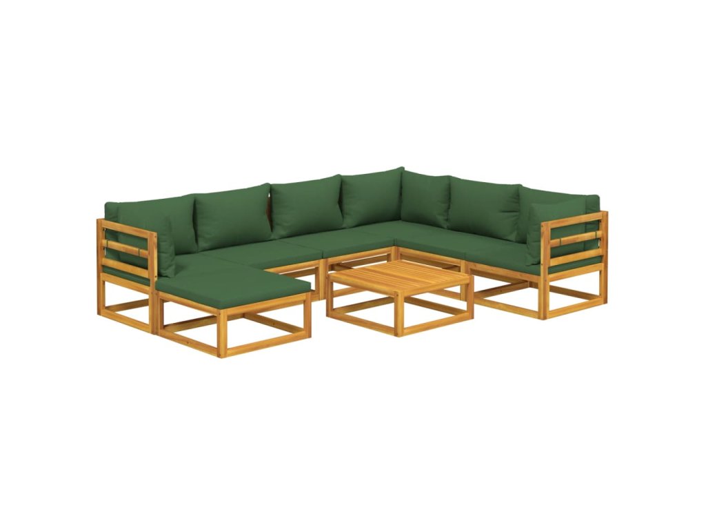 8dílná zahradní sedací souprava zelené podušky masivní dřevo 3155322