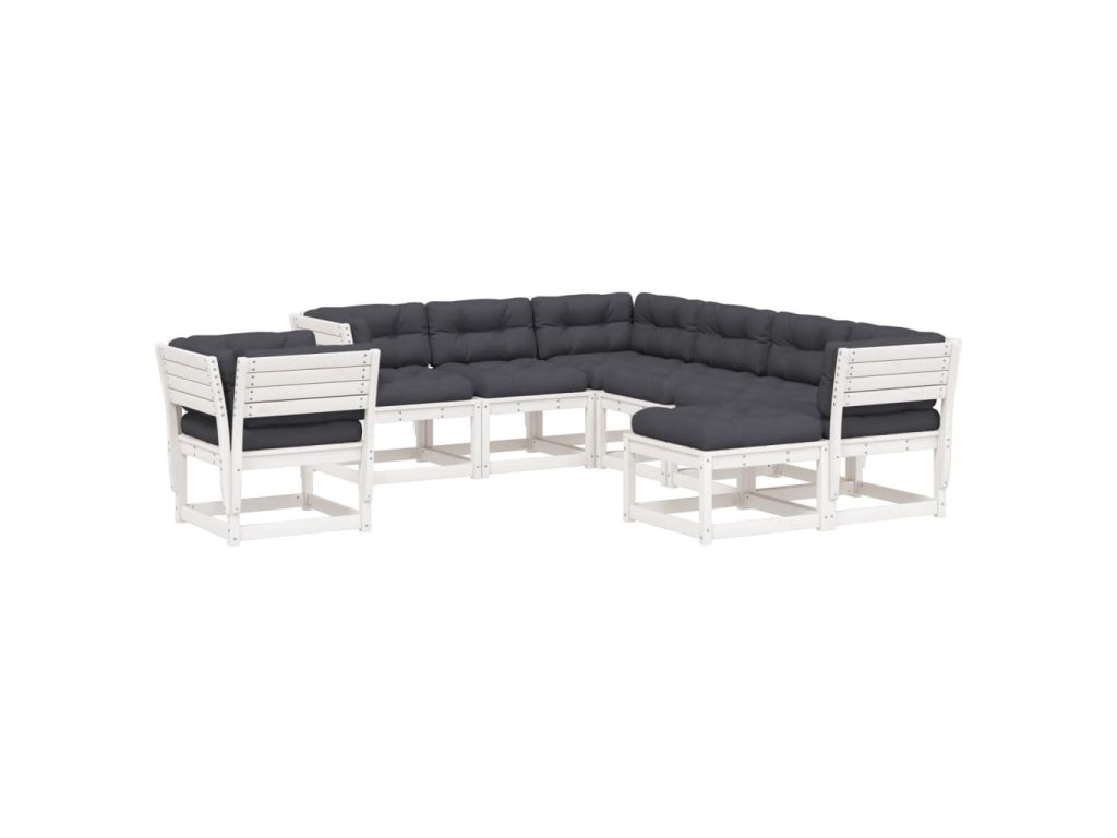 8dílná zahradní souprava s poduškami bílá masivní borovice 3216951