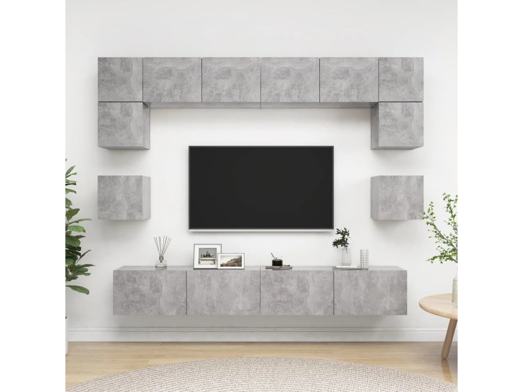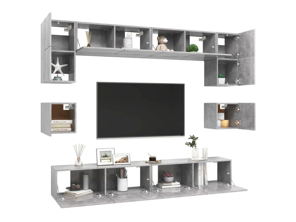 8dílný set TV skříněk betonově šedý kompozitní dřevo 3079112