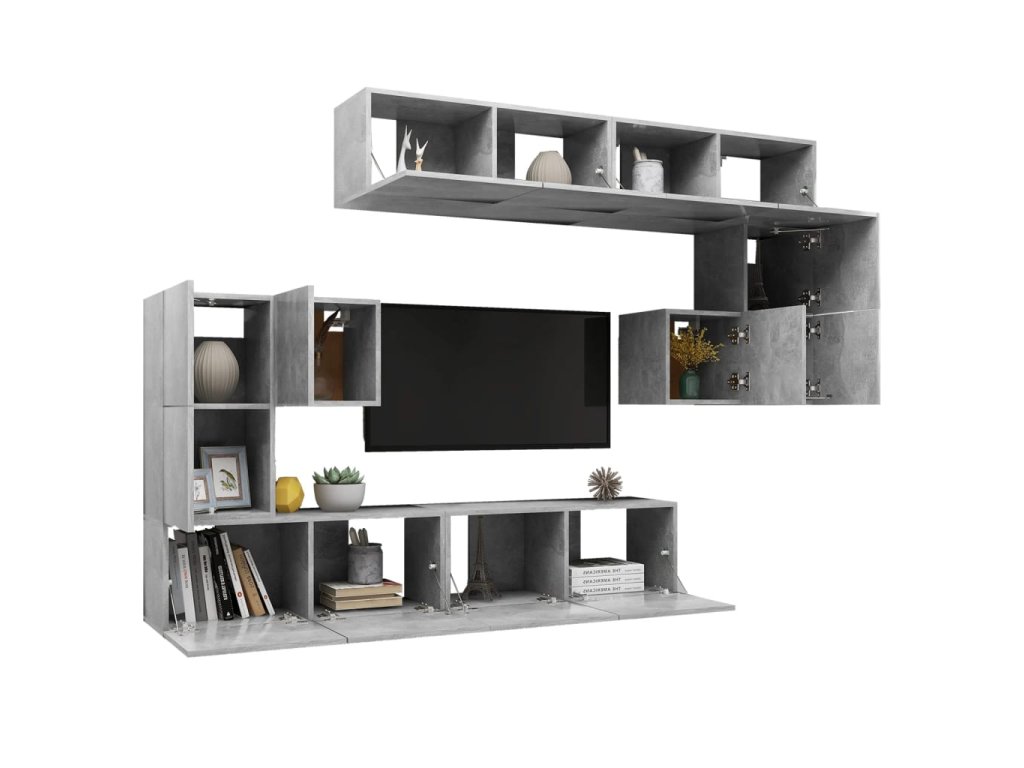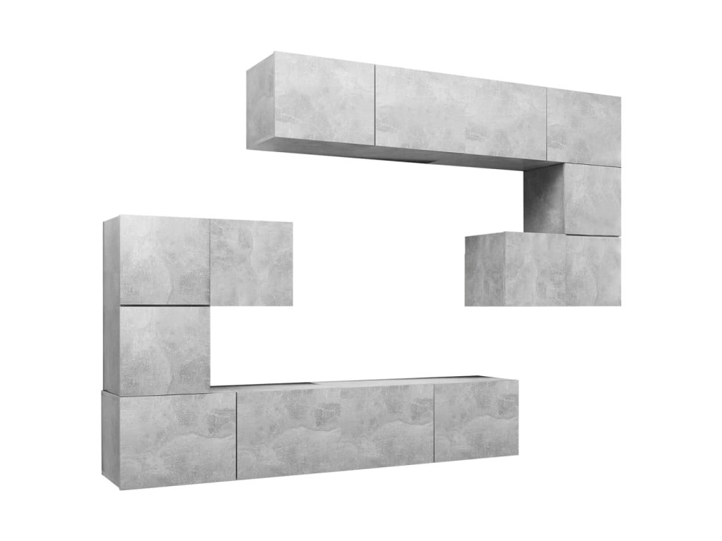 8dílný set TV skříněk betonově šedý kompozitní dřevo 3079143