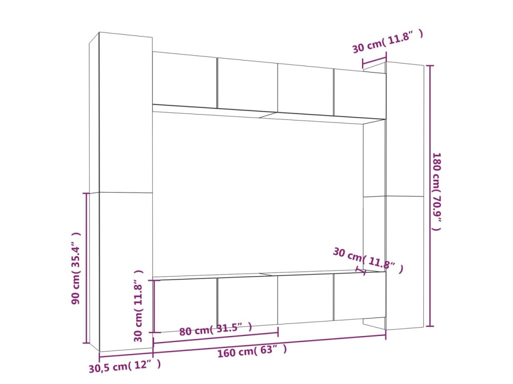 8dílný set TV skříněk dub sonoma kompozitní dřevo 3114232