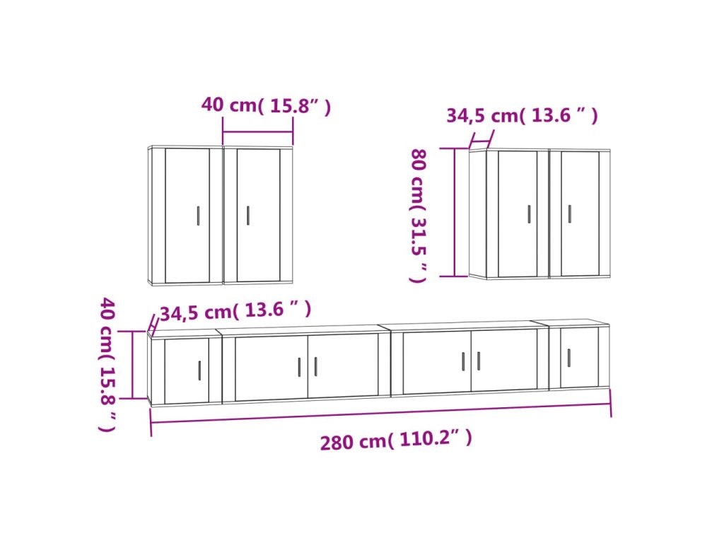 8dílný set TV skříněk kouřový dub kompozitní dřevo 3188707