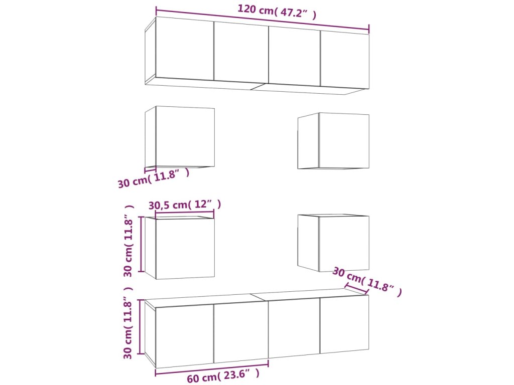 - 4x TV skříňka: 30,5 x 30 x 30 cm (Š x H x V)