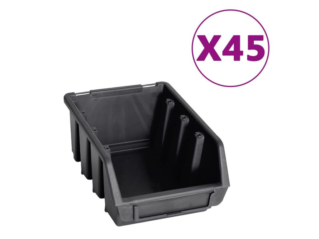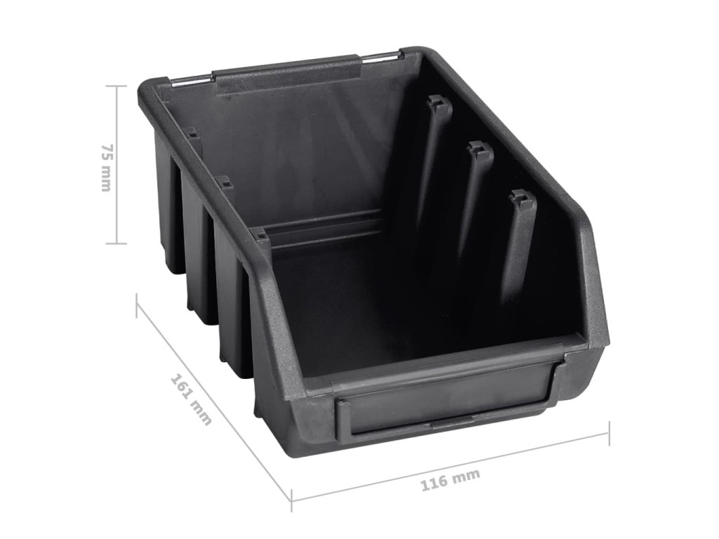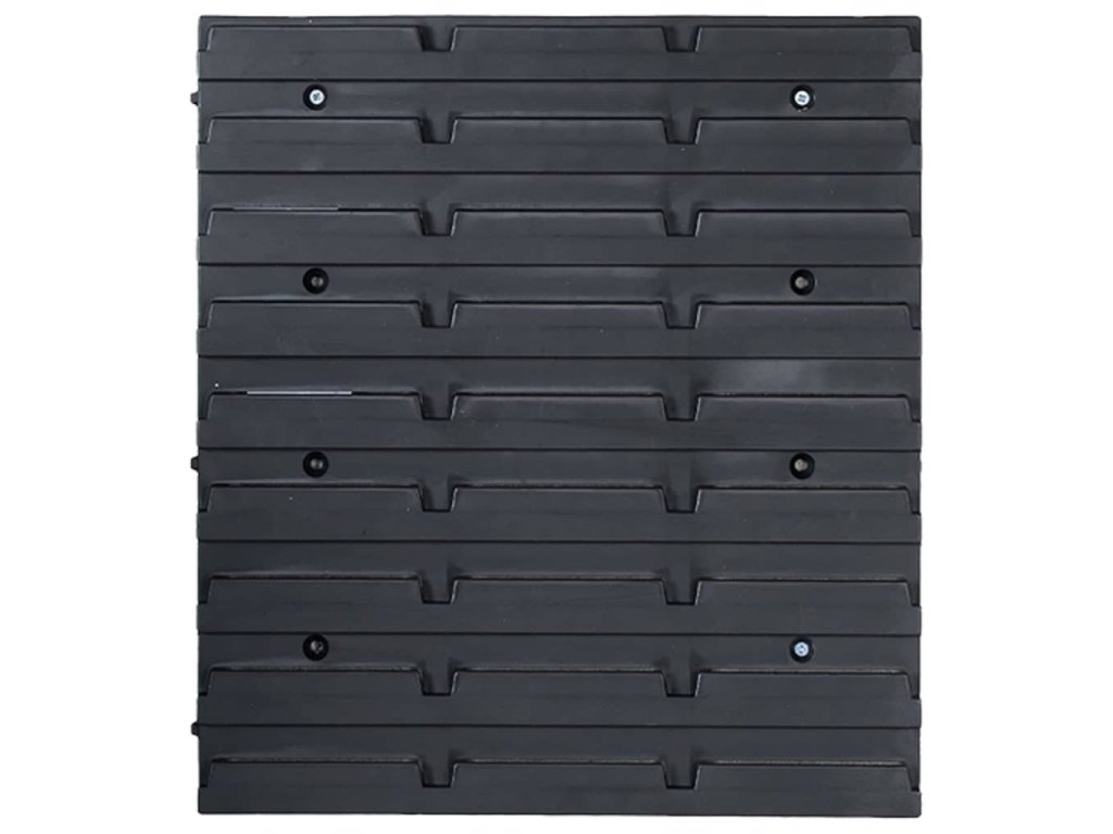 Tento funkční držák se stohovatelnými boxy nabízí celou řadu možností pro uložení malých součástek, jako jsou šrouby, hřebíky, matice, objímky, spoje apod. Do šesti pevných nástěnných panelů je zasazených 90 zásobníků, které si lze označit, abyste měli lepší přehled o jejich obsahu. Jednotlivé boxy můžete také samostatně vytahovat a naskládat je na sebe. Úložnou sadu je možné libovolně rozšiřovat a dá se snadno namontovat na stěnu garáže nebo kůlny. Soupravu skladovacích zásobníků si můžete přizpůsobit dle vlastních potřeb.