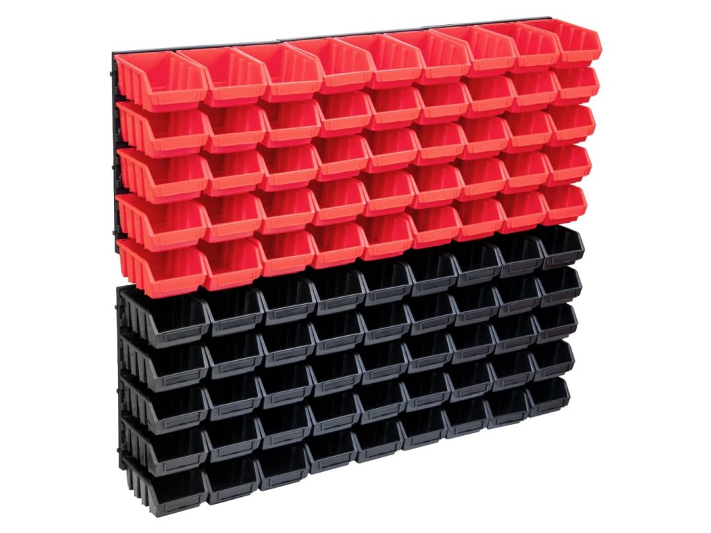 96dílná sada skladovacích zásobníků nástěnné díly červenočerná 150807