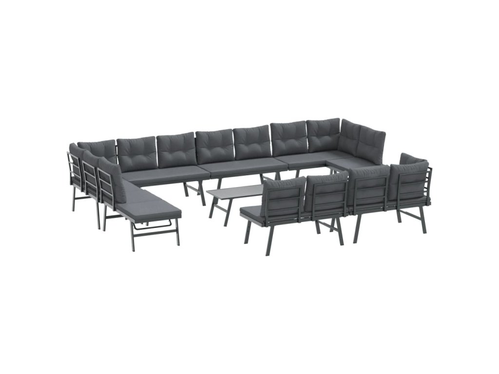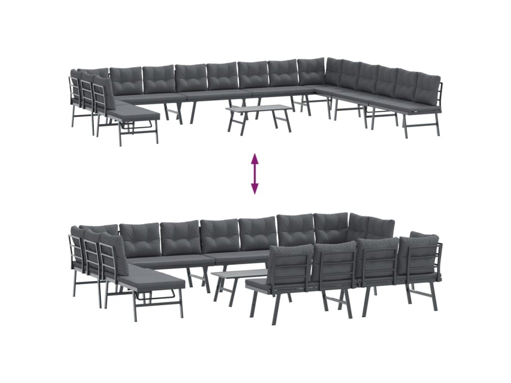 9dílná sada s lavicemi s poduškami černá práškově lakovaná ocel 3283736