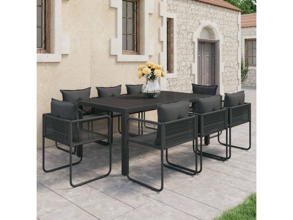 9dílná zahradní jídelní souprava PVC ratan černá 3060105