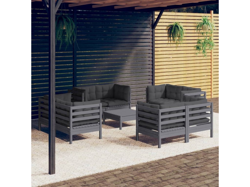 9dílná zahradní sedací souprava a antracitové podušky borovice 3096066