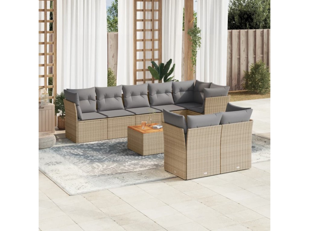 9dílná zahradní sedací souprava a podušky mix béžové polyratan 3256066