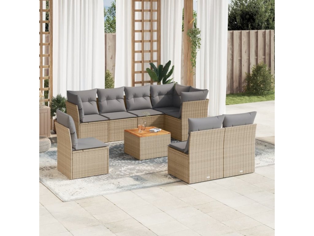 9dílná zahradní sedací souprava a podušky mix béžové polyratan 3256073