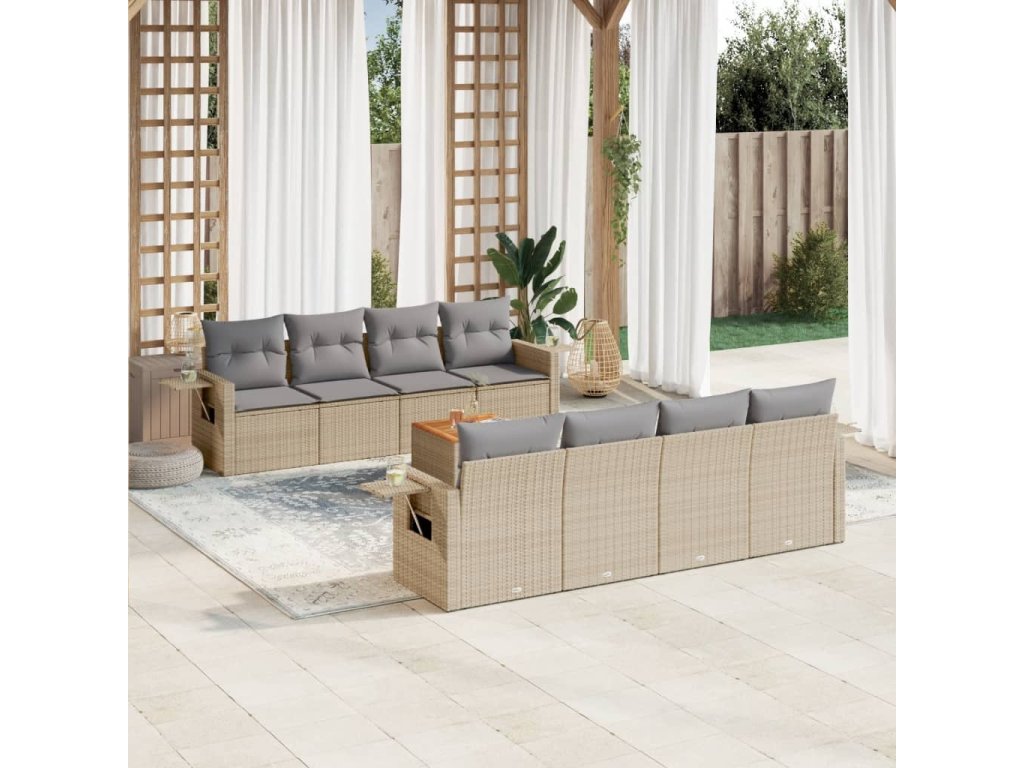 9dílná zahradní sedací souprava a podušky mix béžové polyratan 3256815