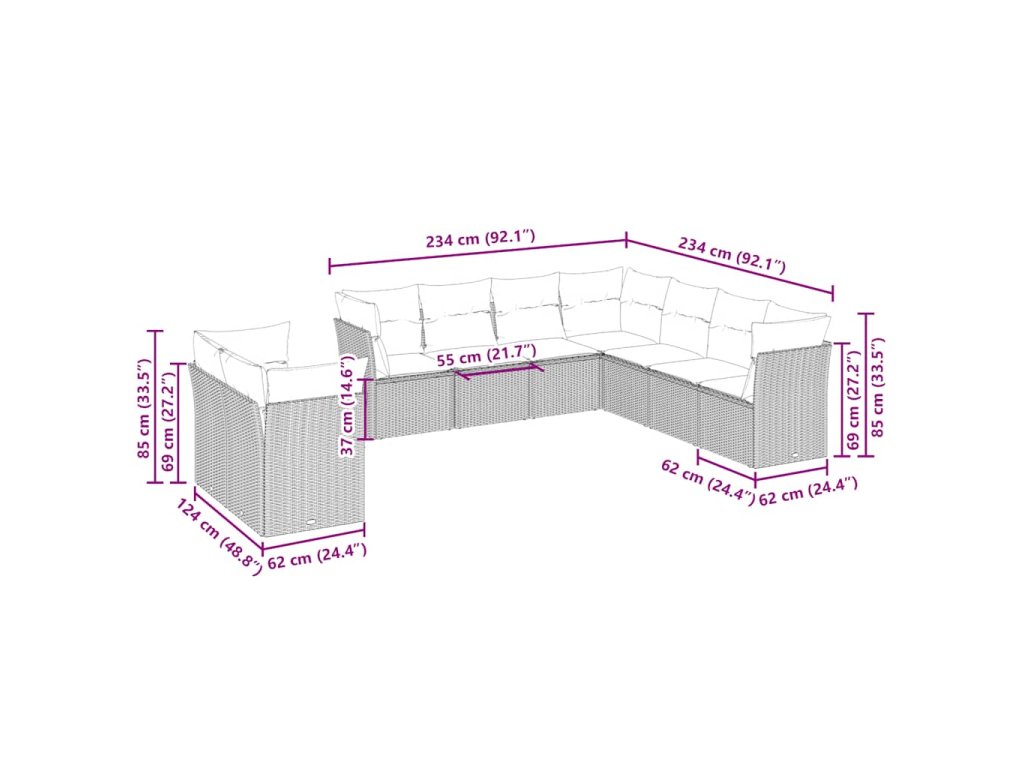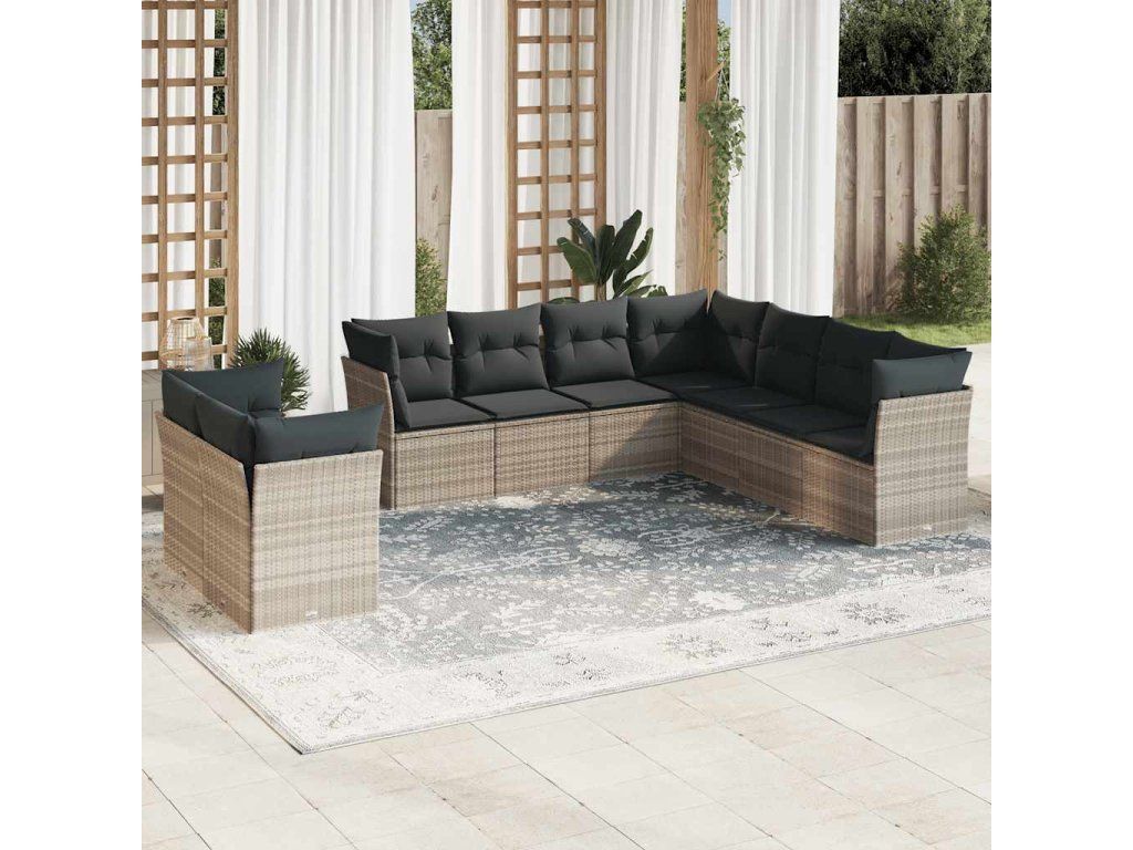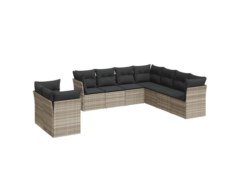 9dílná zahradní sedací souprava a podušky světle šedá polyratan 3217842