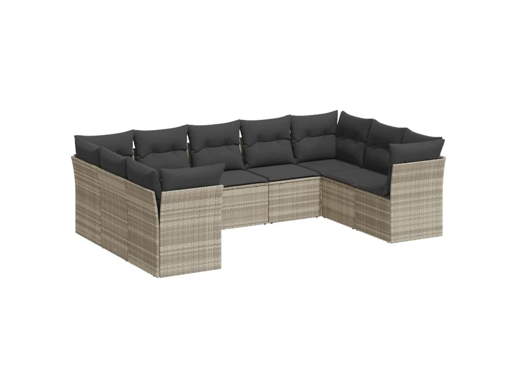 9dílná zahradní sedací souprava a podušky světle šedá polyratan 3218132