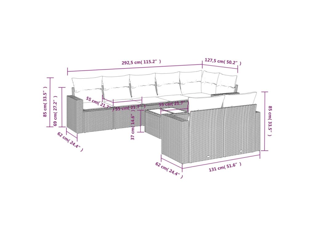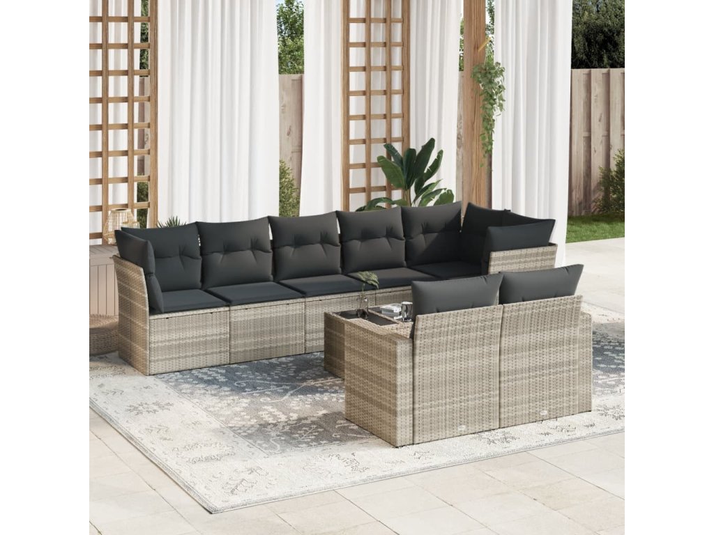 9dílná zahradní sedací souprava a podušky světle šedá polyratan 3219222