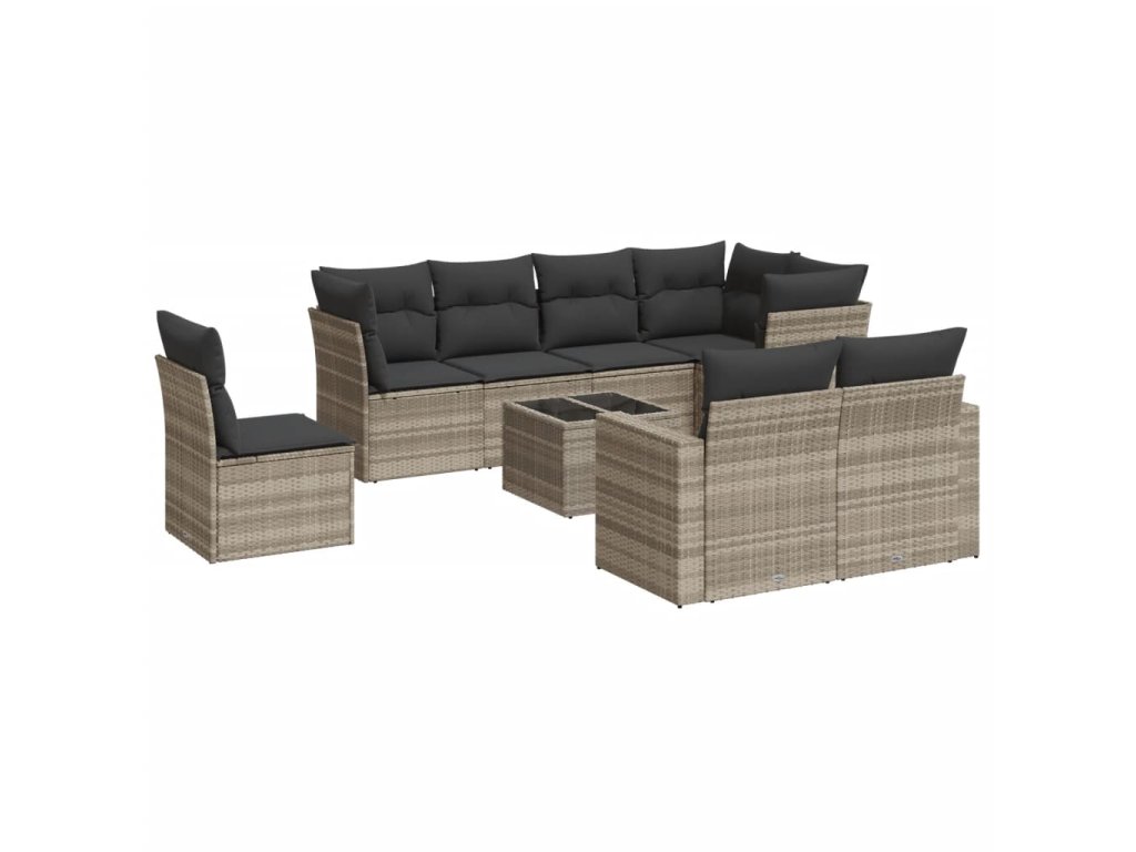 9dílná zahradní sedací souprava a podušky světle šedá polyratan 3219242
