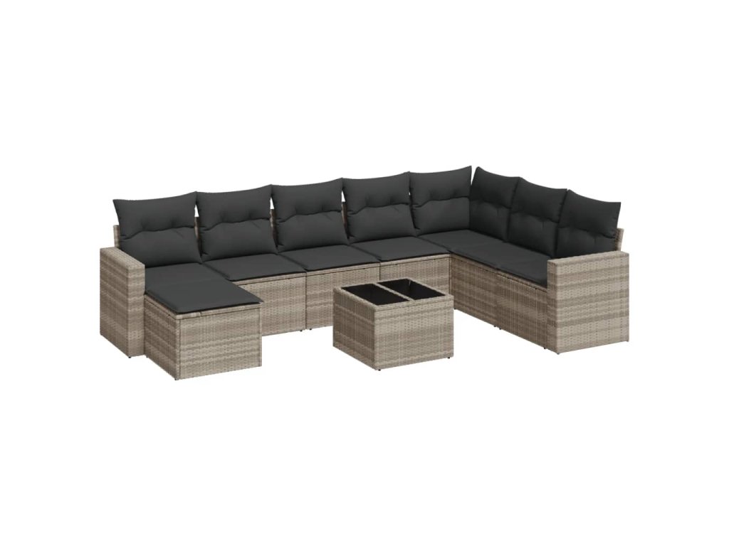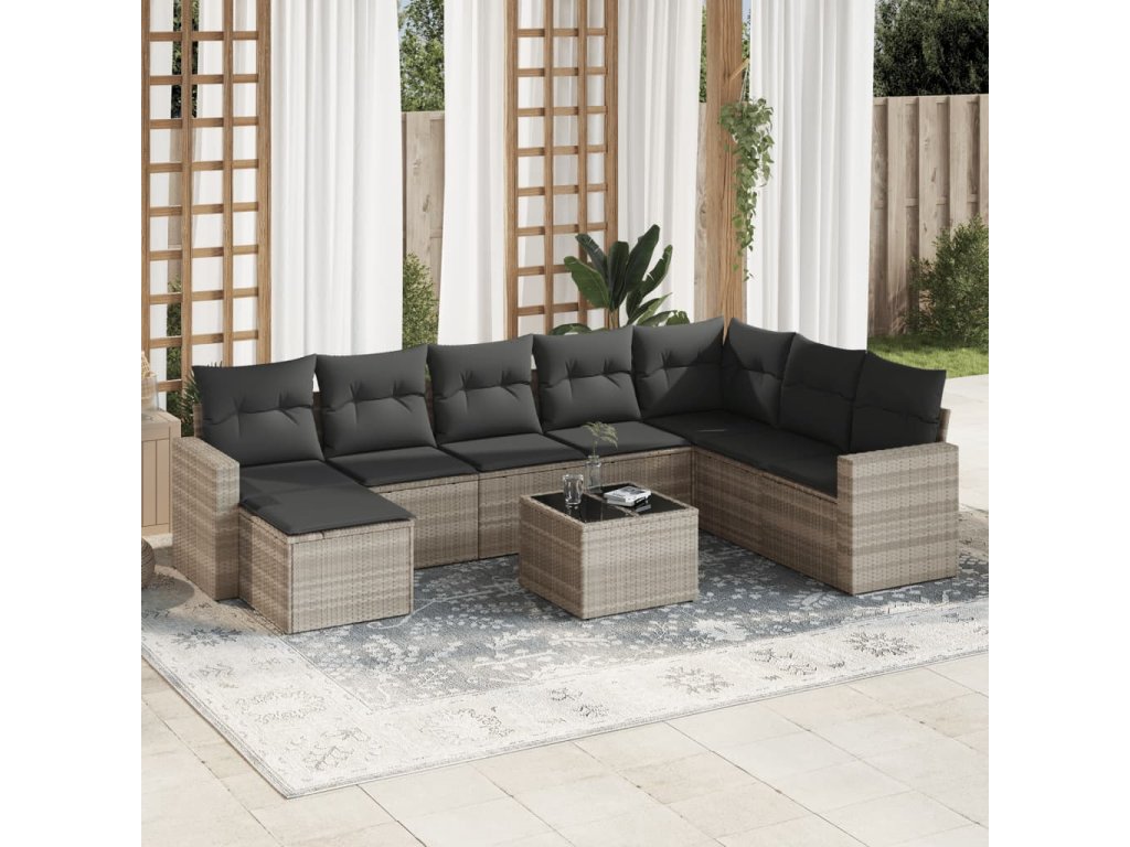 9dílná zahradní sedací souprava a podušky světle šedá polyratan 3219362