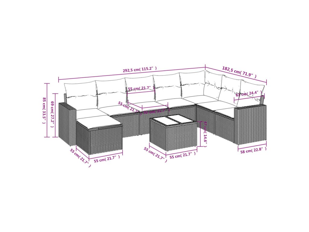 Tato zahradní sedací souprava je dokonalým doplňkem vaší zahrady, terasy nebo dvorku a poskytne vám pohodlné a příjemné místo, kde si můžete povídat s rodinou a přáteli nebo jen tak odpočívat a užívat si pobyt venku.