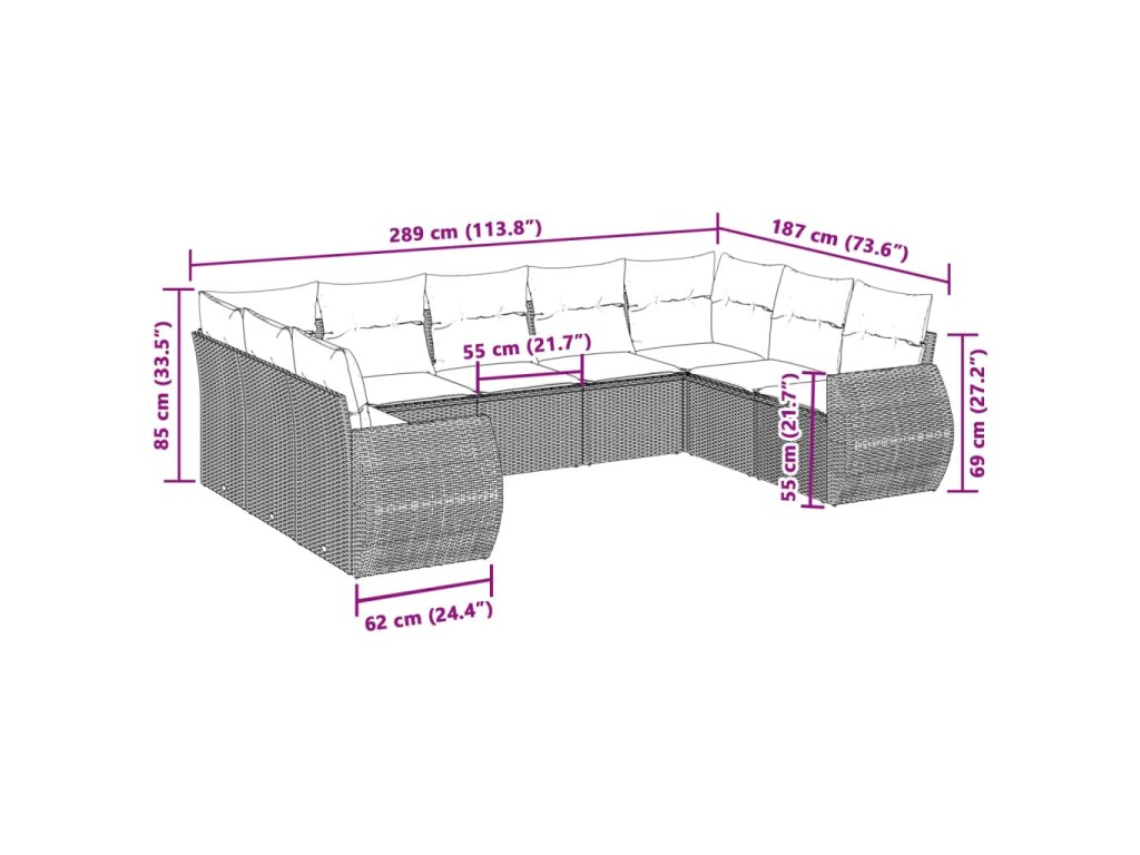 9dílná zahradní sedací souprava a podušky světle šedá polyratan 3221801