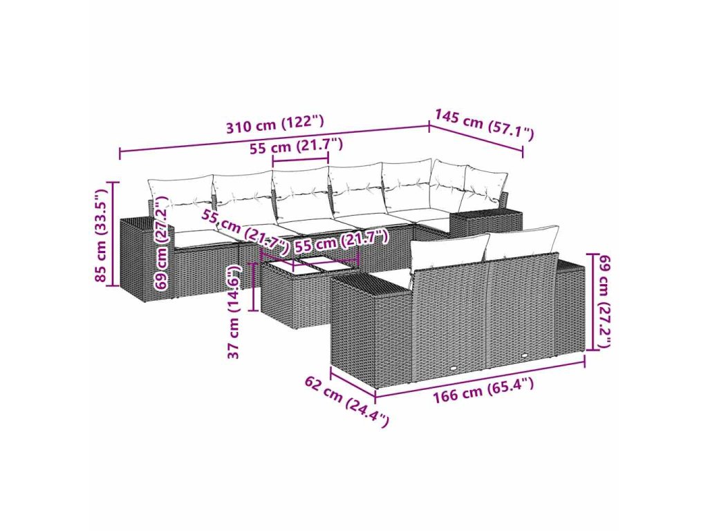 Tato zahradní sedací souprava je dokonalým doplňkem vaší zahrady, terasy nebo dvorku a poskytne vám pohodlné a příjemné místo, kde si můžete povídat s rodinou a přáteli nebo jen tak odpočívat a užívat si pobyt venku.