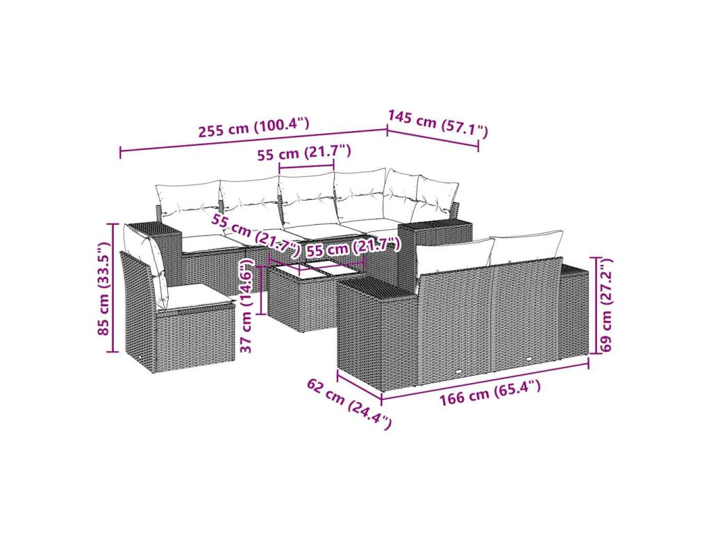 Tato zahradní sedací souprava je dokonalým doplňkem vaší zahrady, terasy nebo dvorku a poskytne vám pohodlné a příjemné místo, kde si můžete povídat s rodinou a přáteli nebo jen tak odpočívat a užívat si pobyt venku.