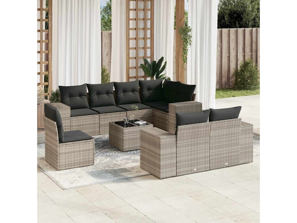 9dílná zahradní sedací souprava a podušky světle šedá polyratan 3222851