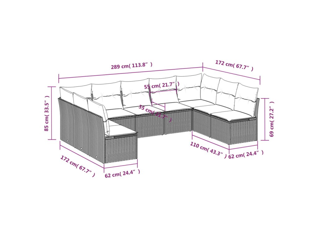 9dílná zahradní sedací souprava a podušky světle šedá polyratan 3249911