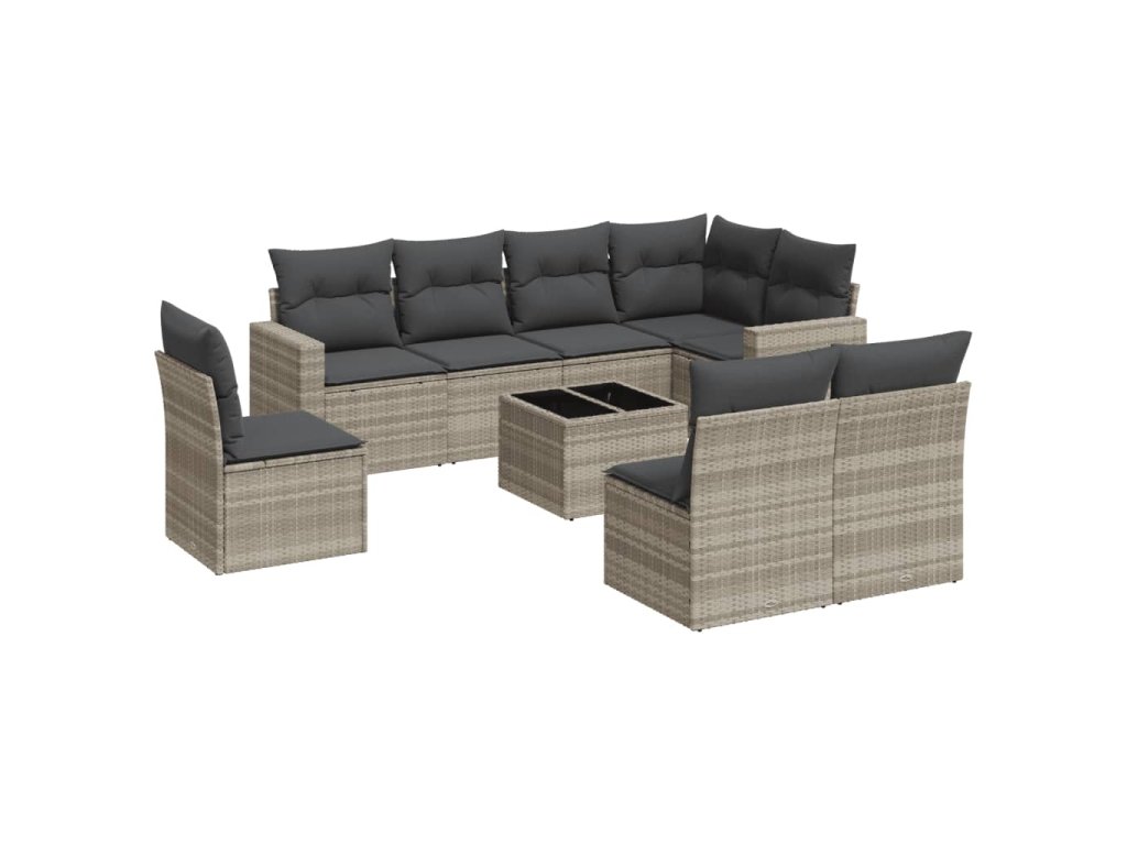 9dílná zahradní sedací souprava a podušky světle šedá polyratan 3251419