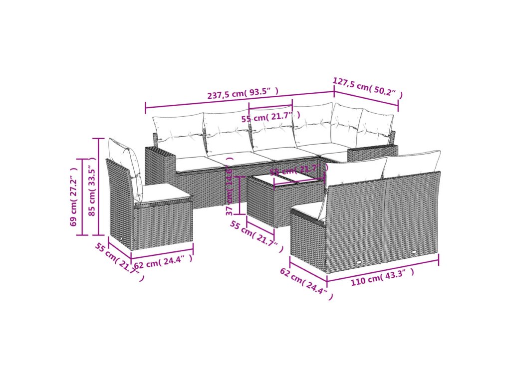 Tato zahradní sedací souprava je dokonalým doplňkem vaší zahrady, terasy nebo dvorku a poskytne vám pohodlné a příjemné místo, kde si můžete povídat s rodinou a přáteli nebo jen tak odpočívat a užívat si pobyt venku.