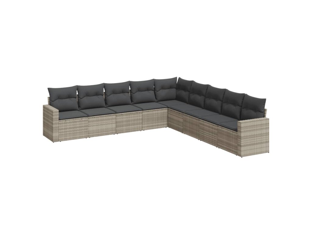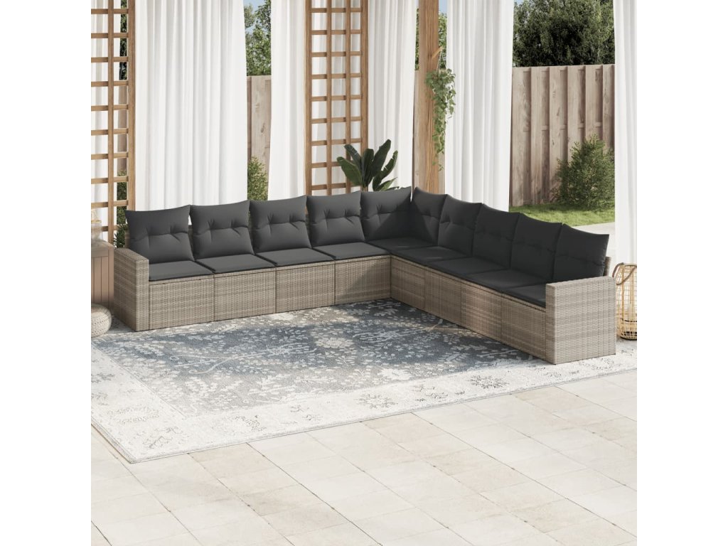 9dílná zahradní sedací souprava a podušky světle šedá polyratan 3251429