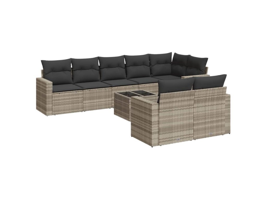 9dílná zahradní sedací souprava a podušky světle šedá polyratan 3251569