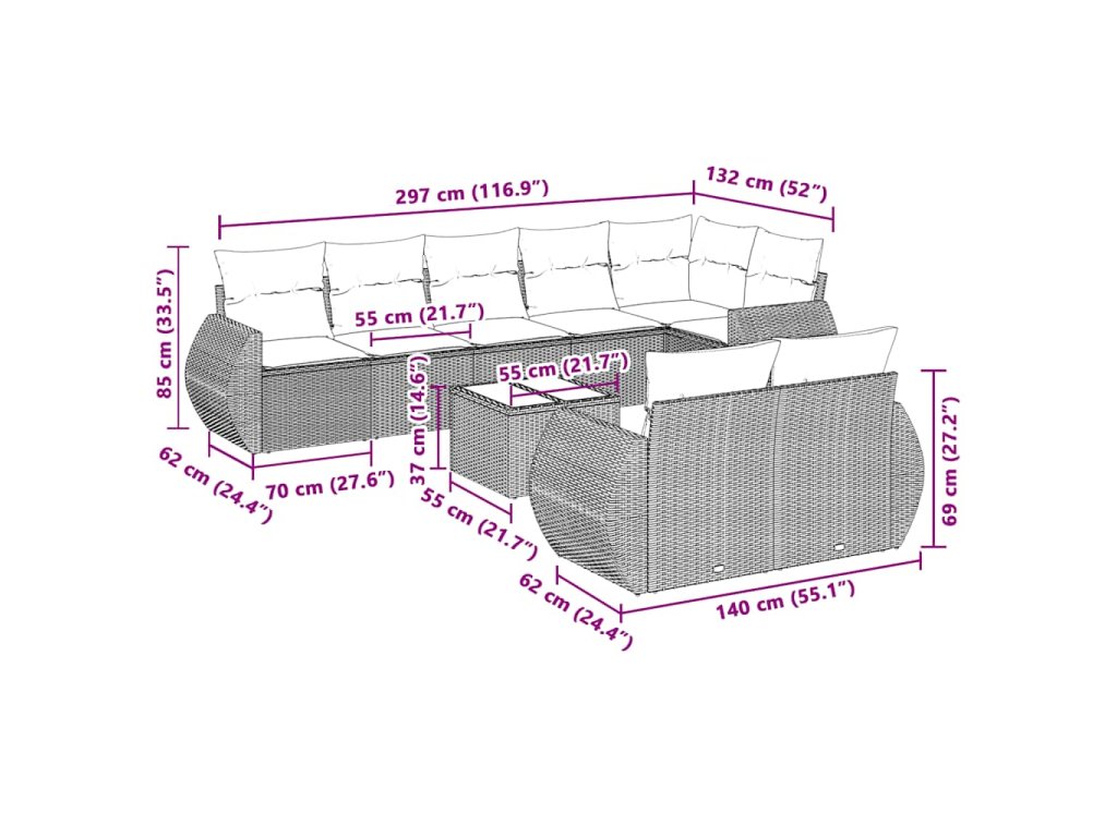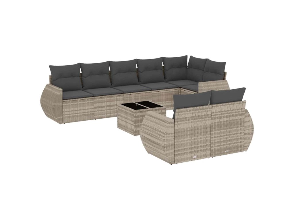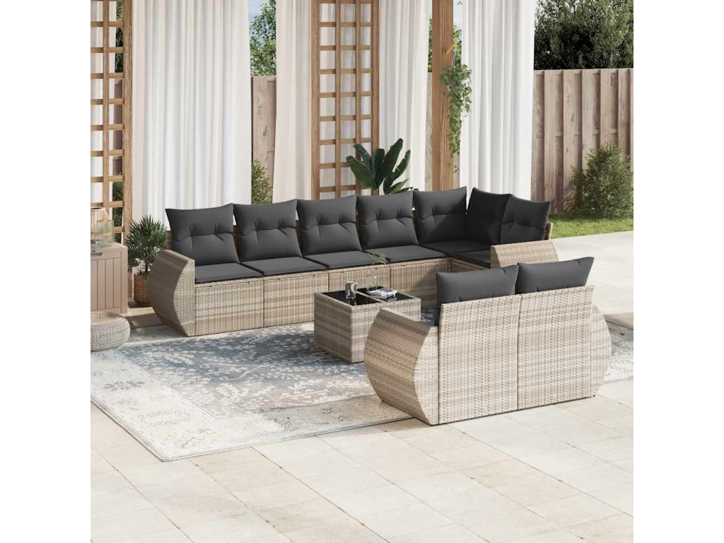 9dílná zahradní sedací souprava a podušky světle šedá polyratan 3253969