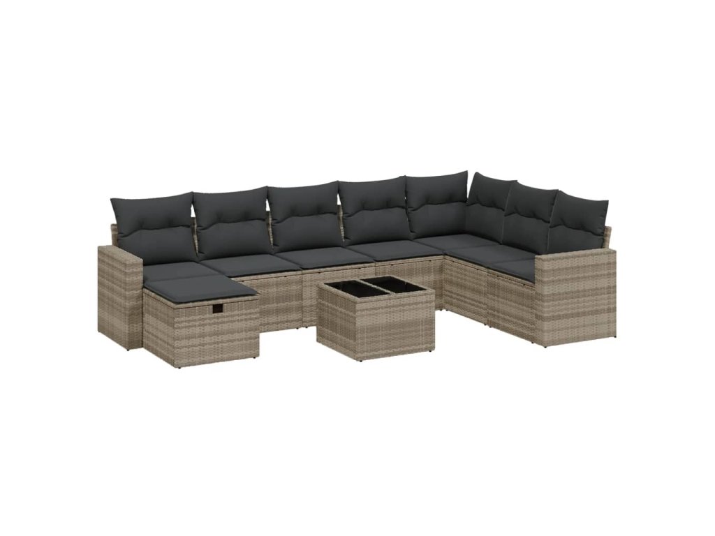 9dílná zahradní sedací souprava a podušky světle šedá polyratan 3263598