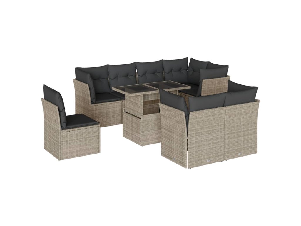 9dílná zahradní sedací souprava a podušky světle šedá polyratan 3266732