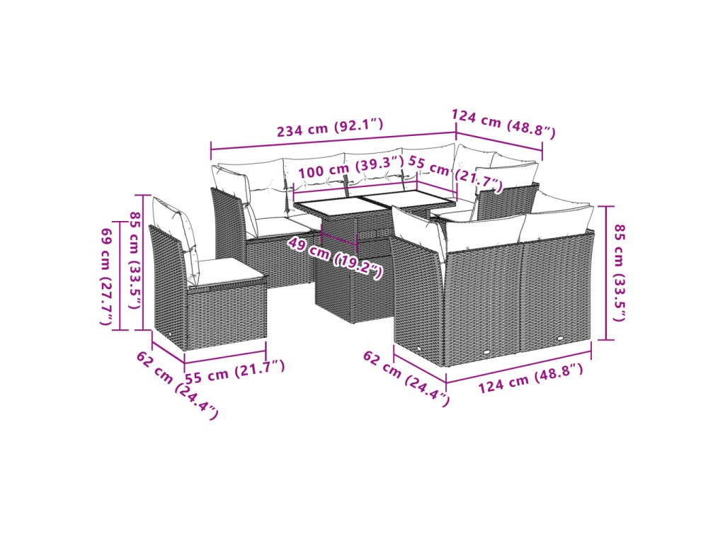 Tato zahradní sedací souprava je dokonalým doplňkem vaší zahrady, terasy nebo dvorku a poskytne vám pohodlné a příjemné místo, kde si můžete povídat s rodinou a přáteli nebo jen tak odpočívat a užívat si pobyt venku.