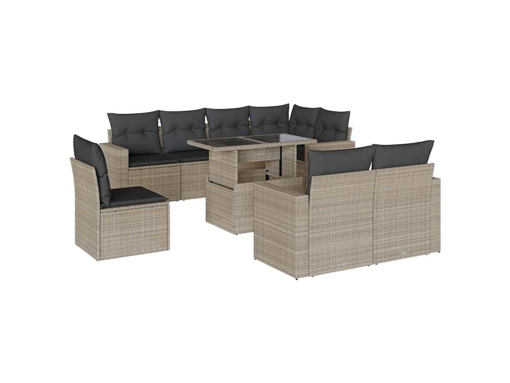 9dílná zahradní sedací souprava a podušky světle šedá polyratan 3267412