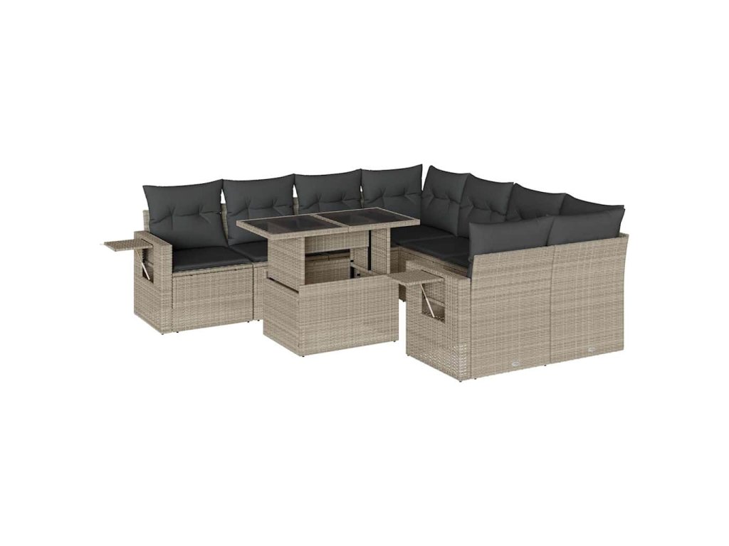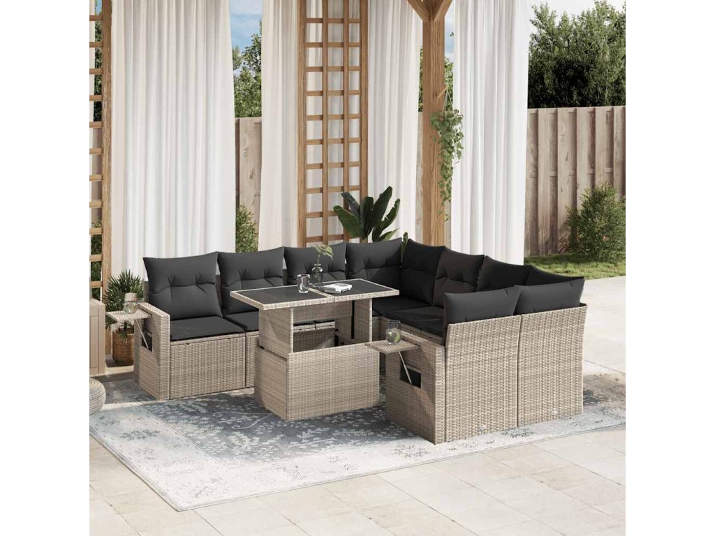 9dílná zahradní sedací souprava a podušky světle šedá polyratan 3267802