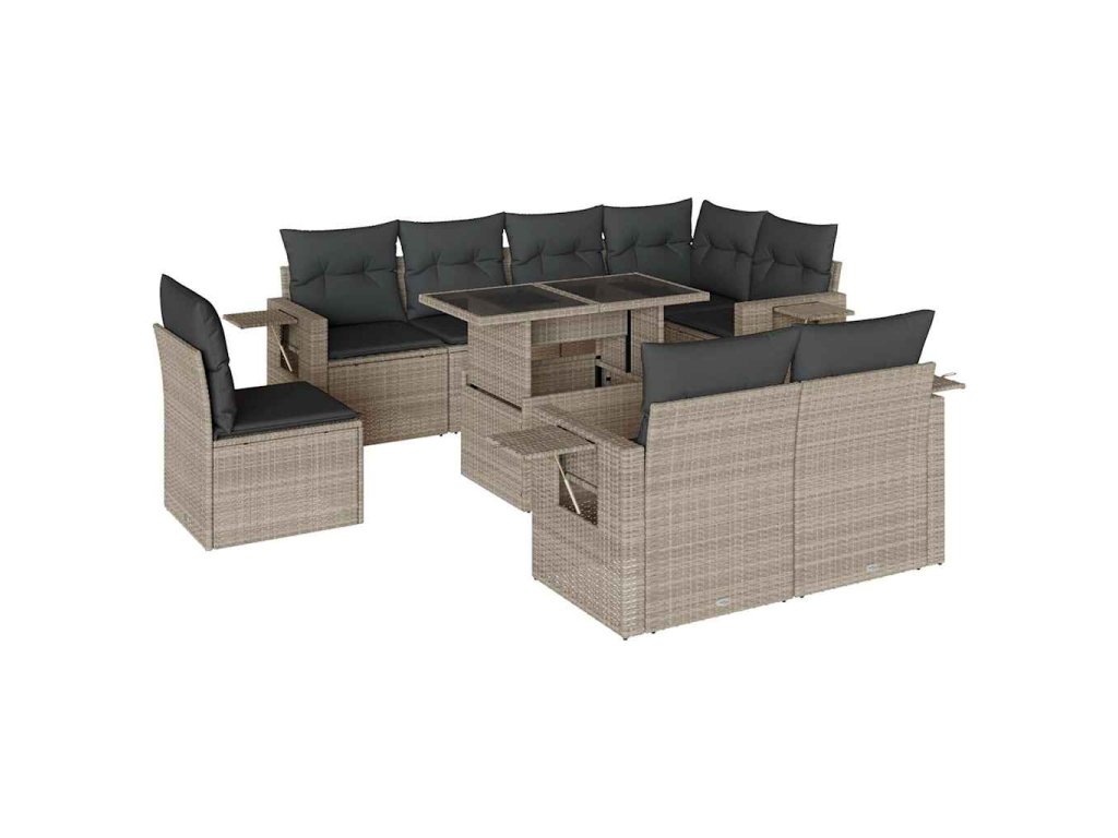 9dílná zahradní sedací souprava a podušky světle šedá polyratan 3268042