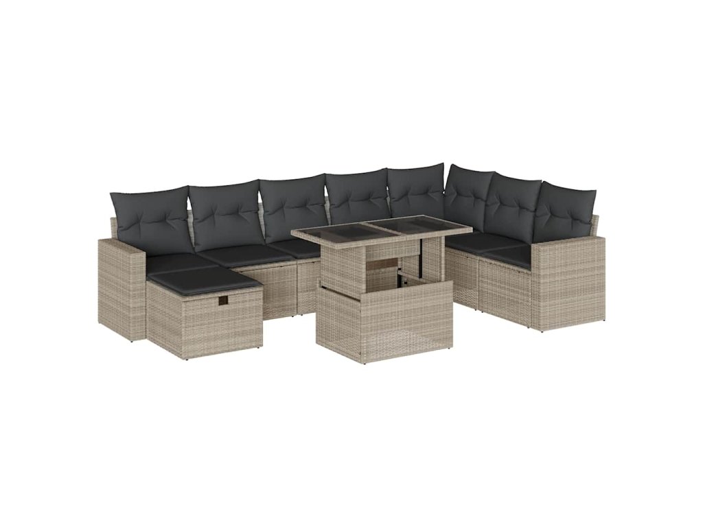 9dílná zahradní sedací souprava a podušky světle šedá polyratan 3274872
