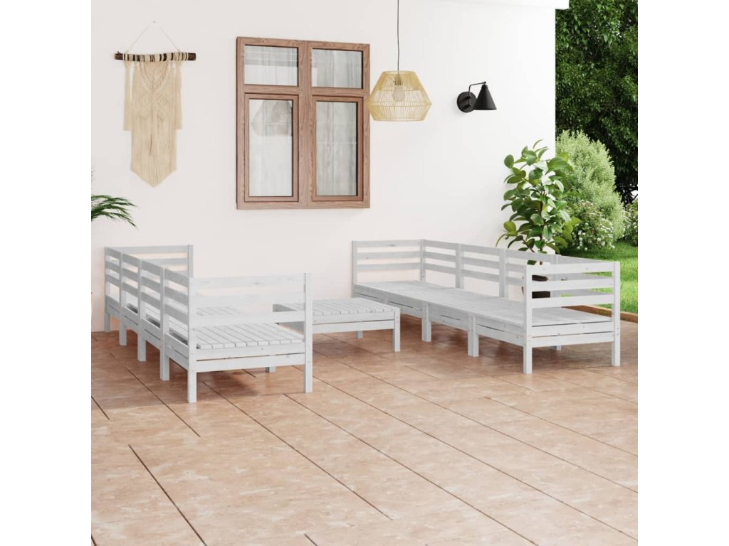 9dílná zahradní sedací souprava bílá masivní borovice 3082518