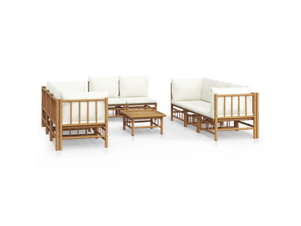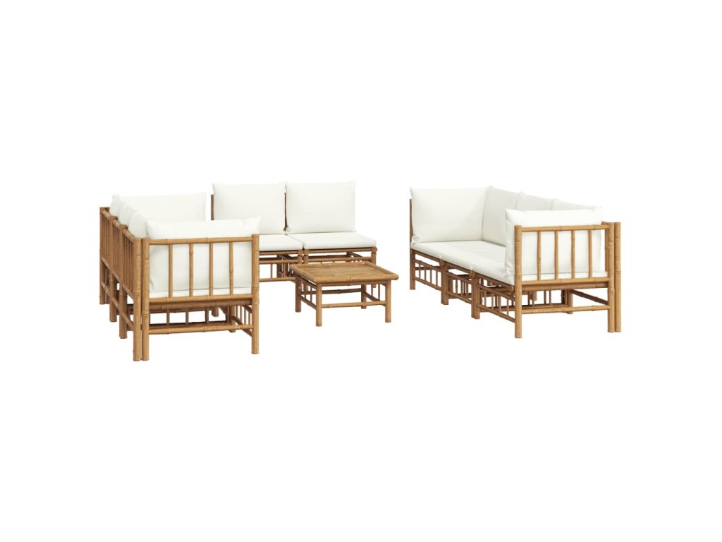 9dílná zahradní sedací souprava krémově bílé podušky bambus 3155187