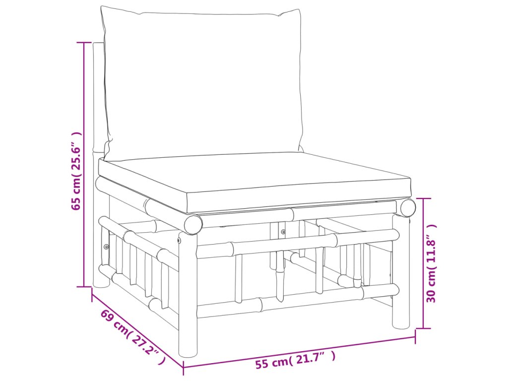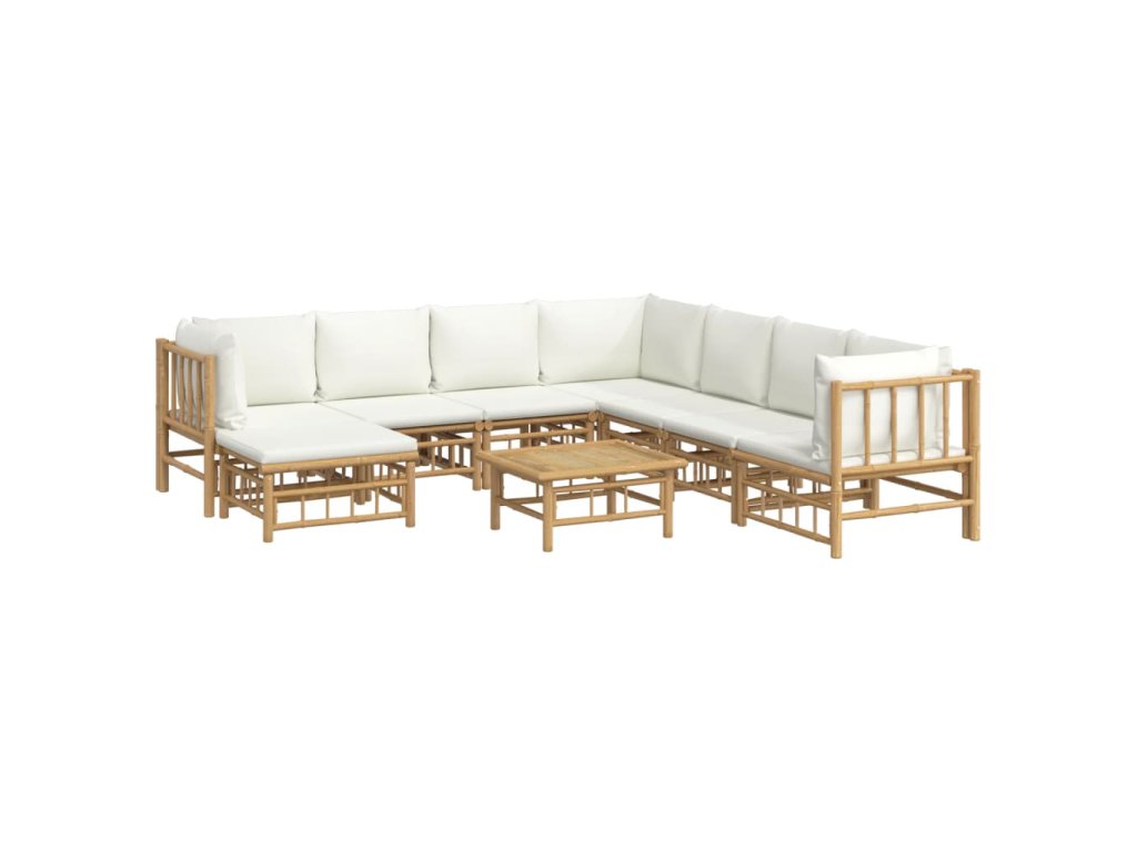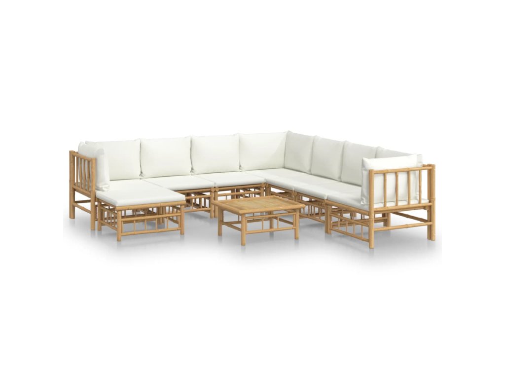 9dílná zahradní sedací souprava krémově bílé podušky bambus 3155196