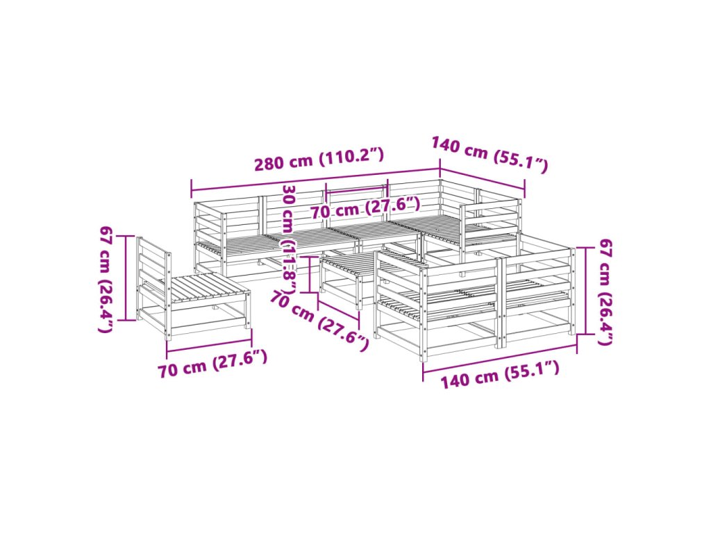9dílná zahradní sedací souprava masivní borové dřevo 3299508