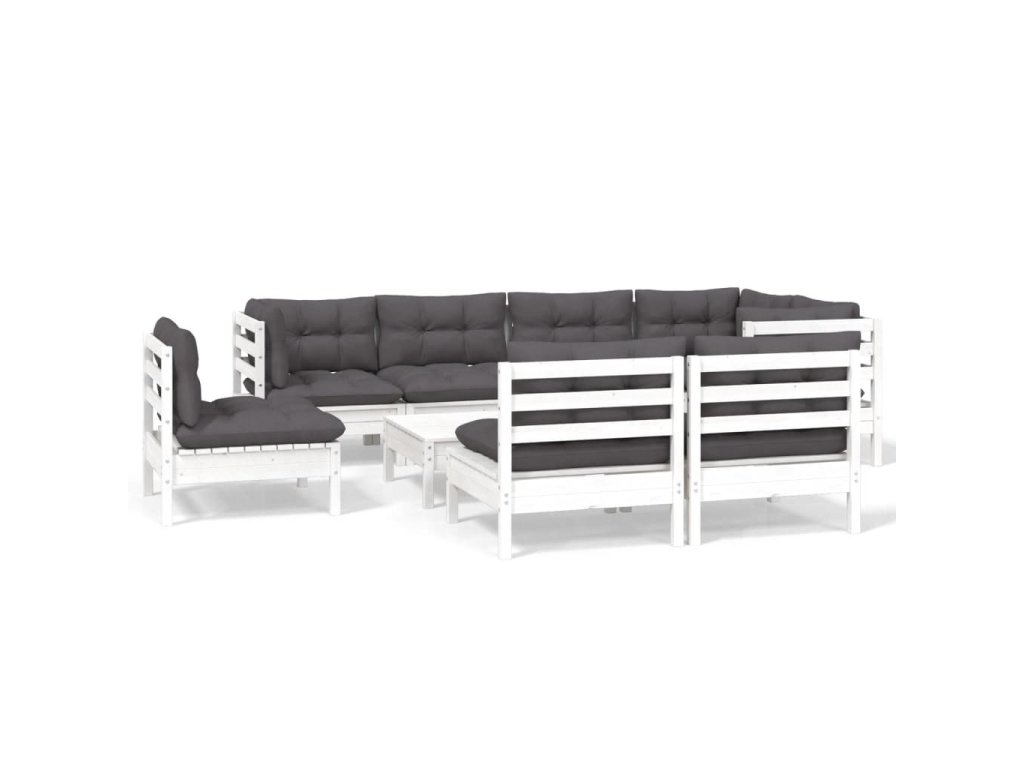 9dílná zahradní sedací souprava podušky bílá masivní borovice 3096473